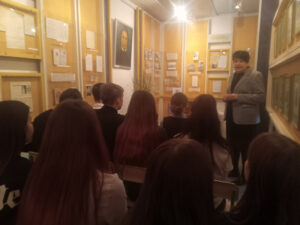 Библиотекари филиала «Остринская горпоселковая библиотека» направились «В гости к писателю» И. П. Шамякину в честь его 105-летия. Празднование прошло в Народном музее А.С. Пашкевич (Тётки) в рамках проекта «Урок в музее». Участниками встречи стали учащиеся 11 класса, хорошо знакомые с творчеством писателя. После вступительного слова хранительницы музея, Аллы Семёновны, библиотекарь представила интересные факты о жизни и творчестве Шамякина. Ребята с интересом рассматривали фотографии, а также новые переиздания его произведений. В конце встречи они ознакомились с небольшой выставкой книг писателя.